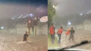 A Defesa Civil de Contagem resgatou um homem que estava sendo levado pela correnteza durante o temporal, na Vila Samag. Os agentes utilizaram uma corda para puxar o homem. A equipe ficou ilhada na Av. Francisco Firmino de Matos.