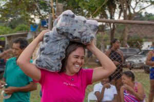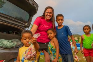 Jordana se alegra ao ver cada sorriso na tradicional Festa das Crianças no Boa Esperança.
