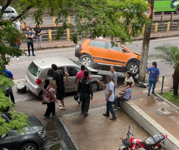 Com o susto, ela perdeu o controle da direção do carro, atingiu um CrossFox que estava estacionado e, na sequência, colidiu em um poste da Cemig.